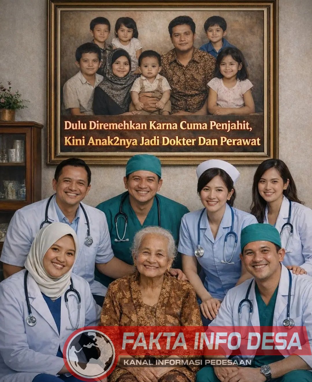 Hari ini, hasil perjuangan itu berdiri nyata di hadapannya. Enam anak yang dulu ia antar sekolah dengan penuh harap, kini mengenakan seragam putih dan hijau kebanggaan. Mereka menjadi perawat dan dokter — menolong banyak orang, mengabdi untuk sesama.